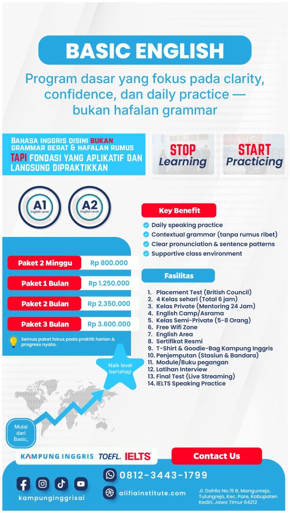 Grammar diajarkan sebagai alat presisi untuk speaking & writing.